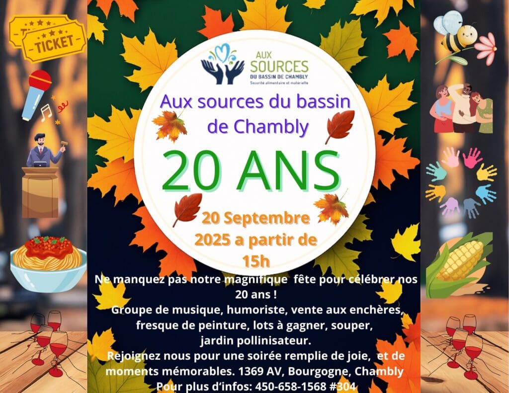 Cet événement marquera les 20 ans d’Aux sources du Bassin de Chambly et promet une journée remplie de plaisir pour tous.