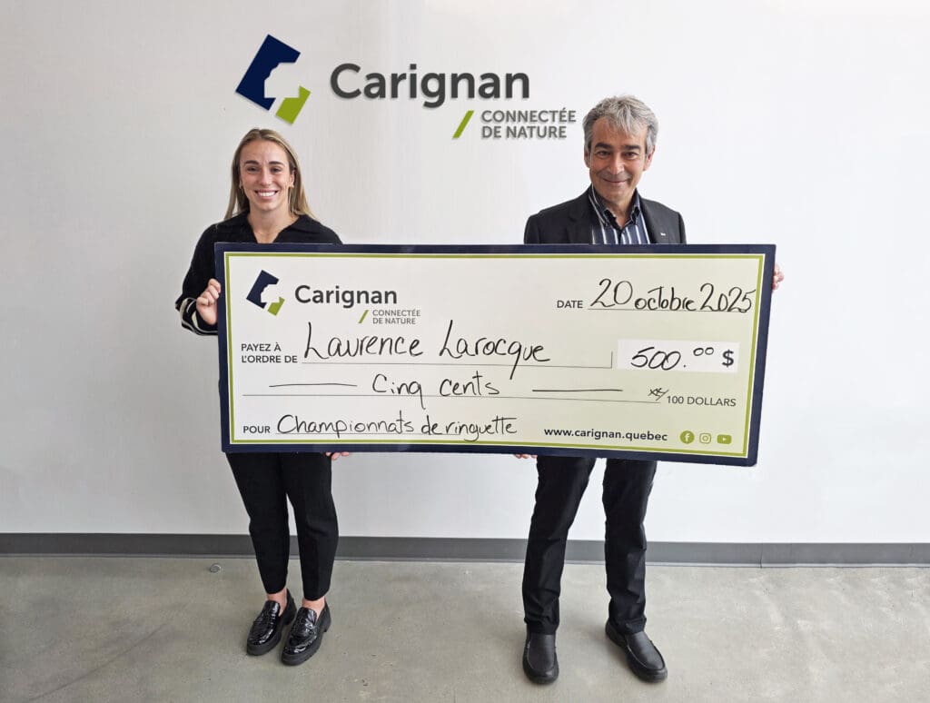 La Ville de Carignan est fière de soutenir Laurence Larocque, une athlète passionnée de ringuette, en lui offrant une aide financière de 500 $ pour sa représentation du Canada aux Championnats du monde de ringuette 2025 qui se déroule du 1er au 9 novembre 2025 en Finlande.