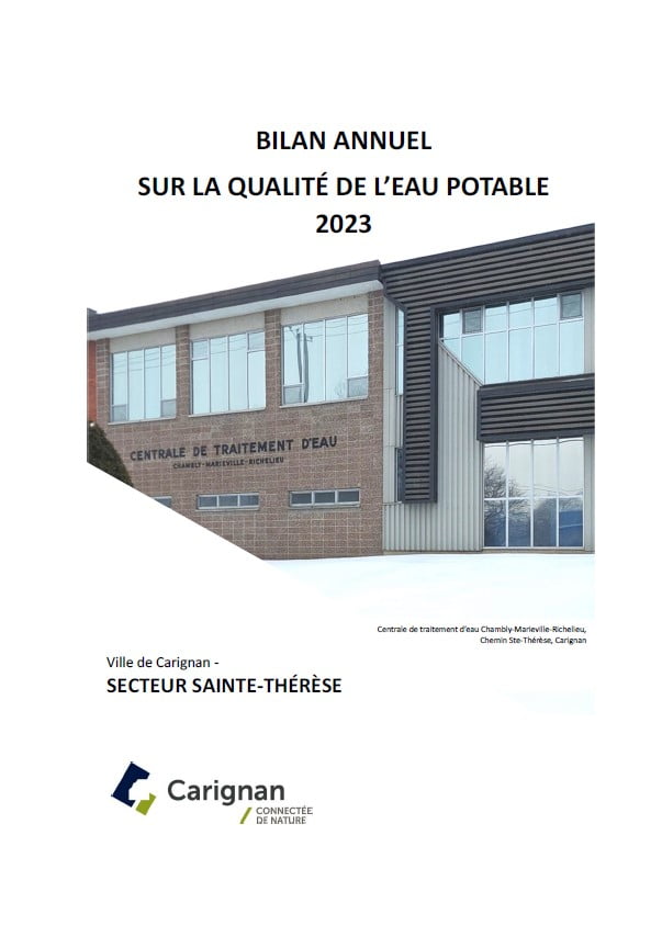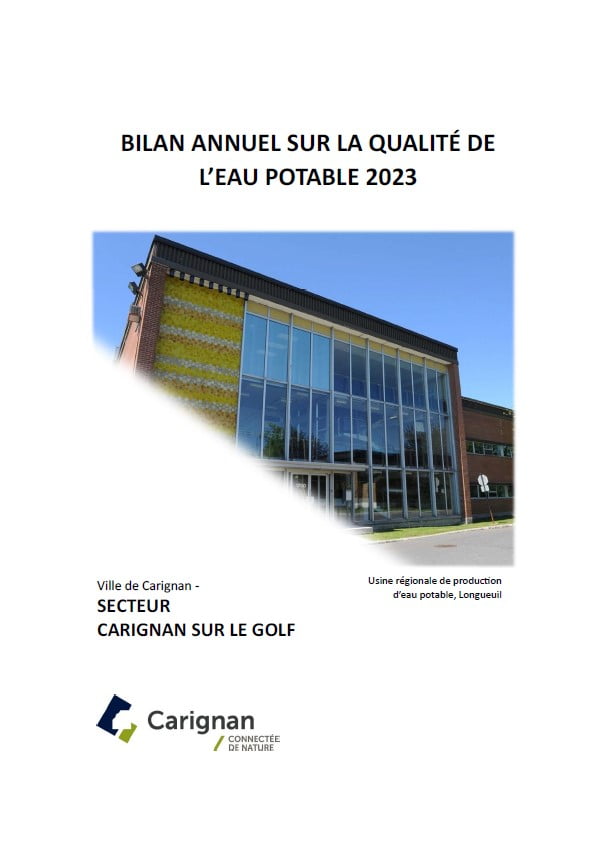 Chaque année, en tant que responsable d’un système de distribution d’eau potable, la Ville de Carignan rend disponible au public son bilan annuel de la qualité de l’eau potable de tous ces réseaux de distribution, en vertu de l’article 53.3 de la loi sur la qualité de l’eau potable.