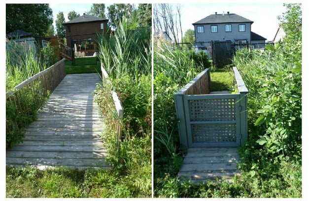 Nous avons noté la présence de plusieurs passerelles enjambant le fossé entre les arrières-lots de la rue Gertrude et la piste cyclable. Le reprofilage du fossé et la construction de la voie de contournement obligeront leur retrait/déplacement. Les citoyens qui désirent déplacer eux-mêmes leurs ouvrages/aménagements avant qu’ils ne soient retirés/déplacés par l’entrepreneur sont invités à le faire dans les meilleurs délais (prochaines semaines).