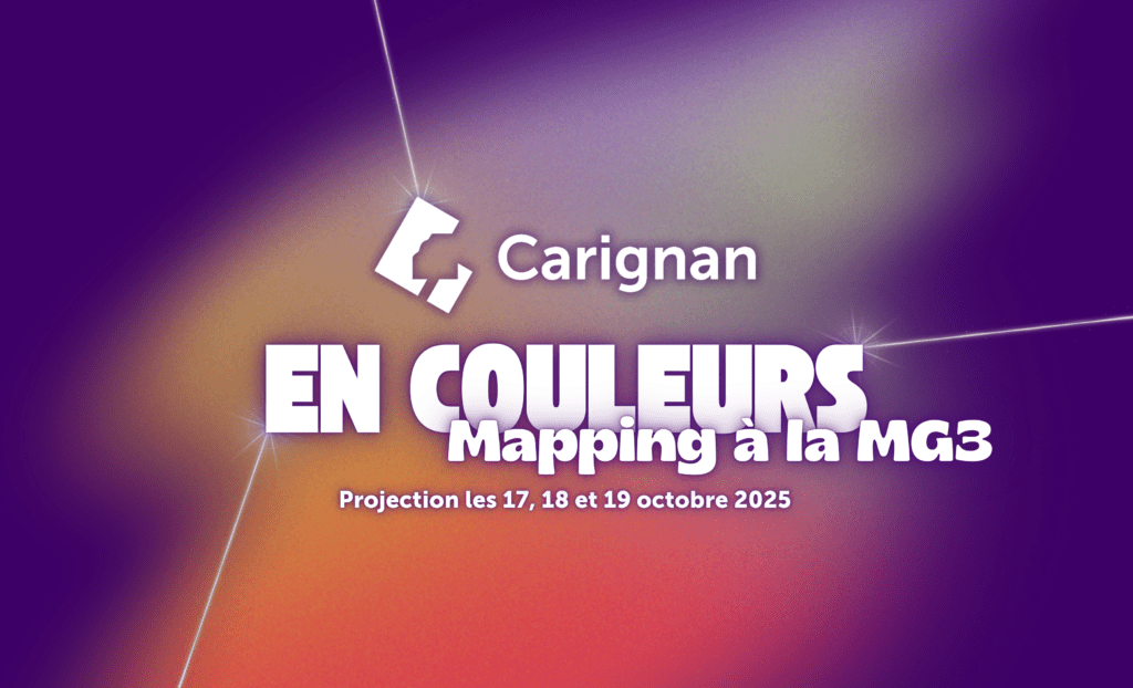 Lors de l’événement Carignan en couleurs le 17 octobre, une création numérique originale à Carignan sera projetée sous forme de mapping sur la façade extérieure de la MG3. L’oeuvre sera présentée du 17 octobre jusqu’au 19 octobre inclusivement, de 18 h à 21 h.