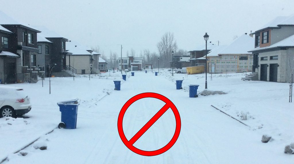 Il est crucial de comprendre que chaque bac mal placé représente un obstacle supplémentaire pour nos équipes de déneigement, réduisant leur capacité à assurer des conditions de circulation sûres et optimales. Votre collaboration est donc indispensable pour garantir un déneigement efficace et sécuritaire dans notre communauté.