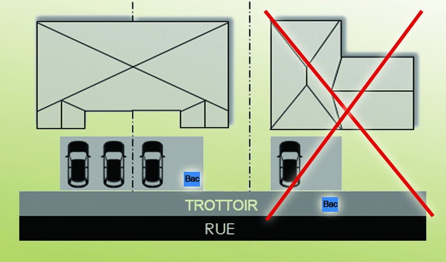 - Positionnement des bacs : Assurez-vous que vos bacs d’ordures, de matières organiques ou recyclables sont placés à l’intérieur de votre entrée de cour, en retrait du trottoir. Évitez de les placer directement sur le trottoir ou dans la rue.