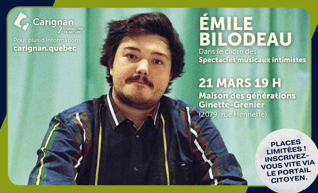 Laissez-vous emporter par la musique du fantastique Émile Bilodeau le vendredi 21 mars 2025 à la Maison des générations Ginette-Grenier, située au 2079, rue Henriette.