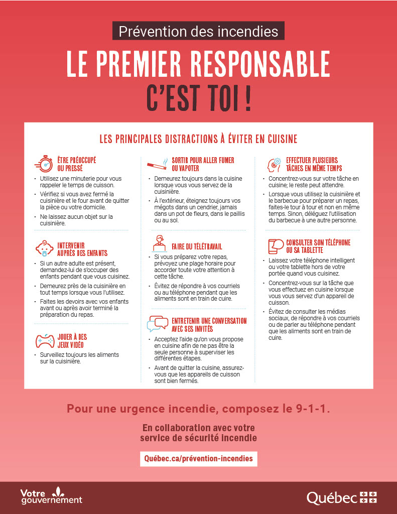 N’oubliez pas que votre meilleur allié demeure l’avertisseur de fumée. Installez-le aux bons endroits, testez-le régulièrement et remplacez sa pile au besoin.