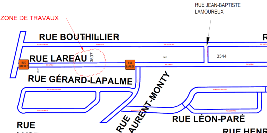 Des travaux de raccordement auront lieu le mercredi 15 octobre 2025, plus précisément devant l'adresse civique 3507, rue Lareau