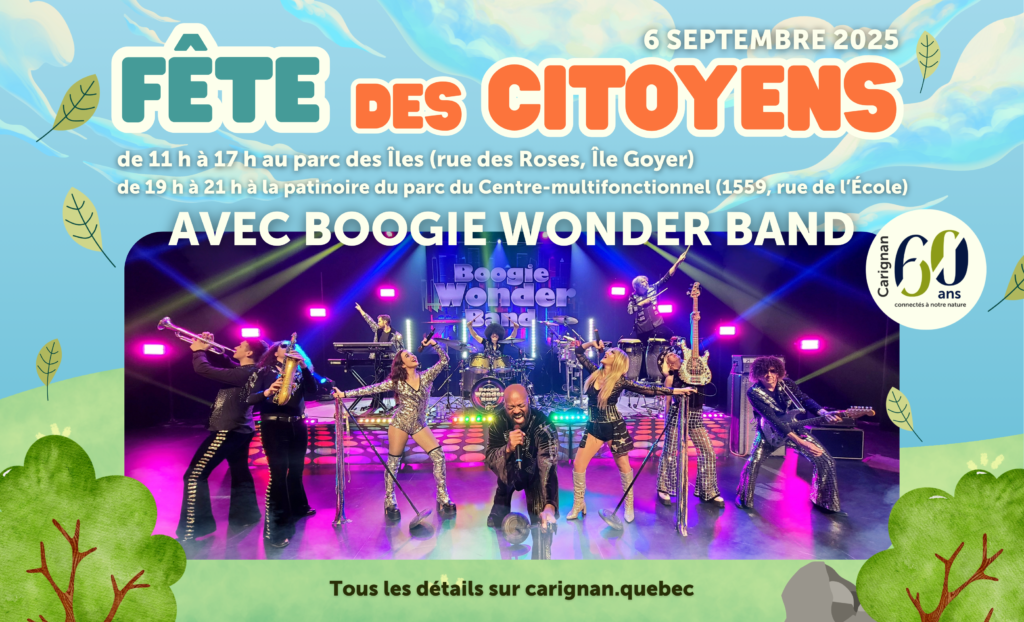 La Ville de Carignan invite tous ses citoyens à participer à la Fête des citoyens, qui se tiendra ce samedi 6 septembre, de 11 h à 17 h, au parc des Îles, situé sur la rue des Roses, au sud de la rue des Deux-Rivières, puis de 19 h à 21 h à la patinoire couverte du parc du Centre-multifonctionnel (1559, rue de l’École).